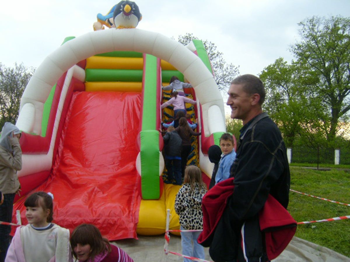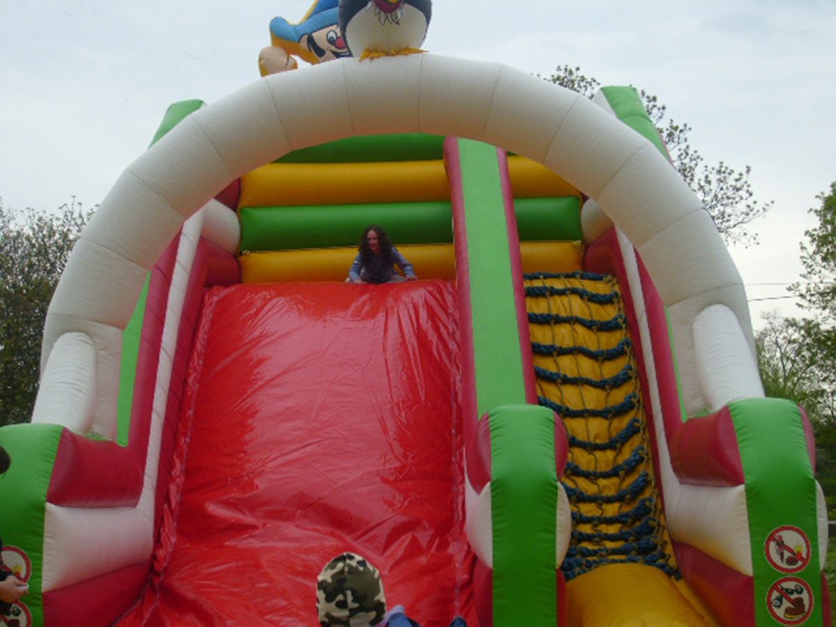 Zjeżdżalnia posiada szeroki ślizg z którego może korzystać SWOBODNIE I BEZPIECZNIE nawet 3-4 dzieci jednocześnie, dzięki temu ma dużą przepustowość.