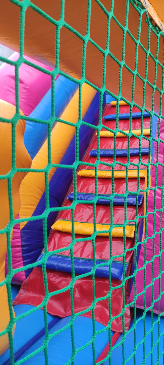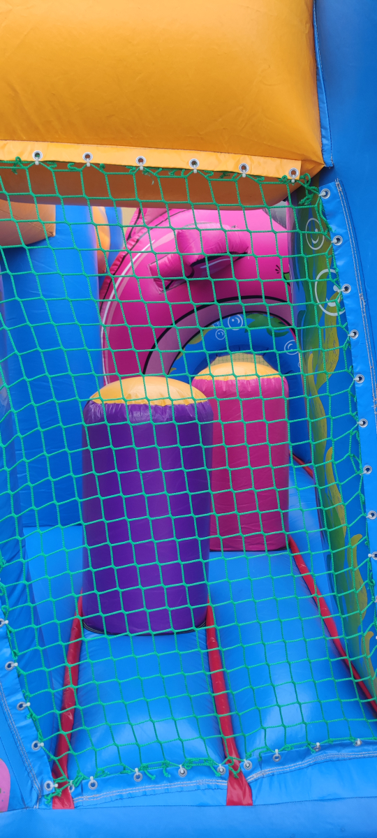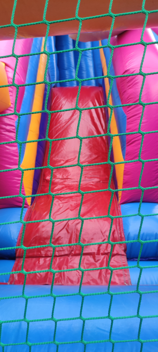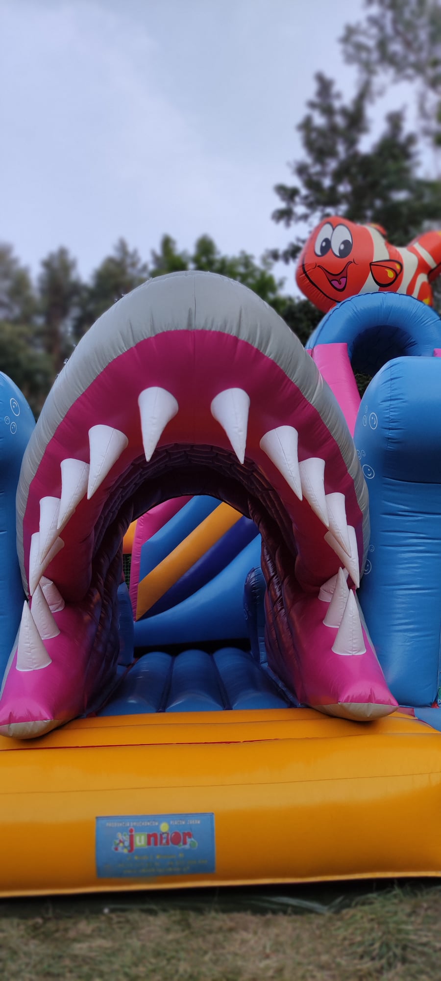 Urządzenie jest połączeniem dmuchanego placu zabaw, zamku do skakania oraz posiada wbudowaną wysoką zjeżdżalnię.