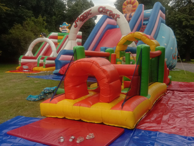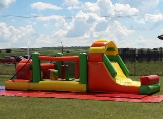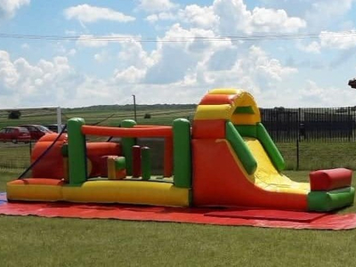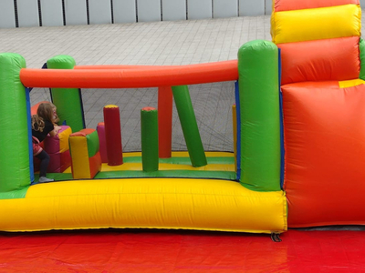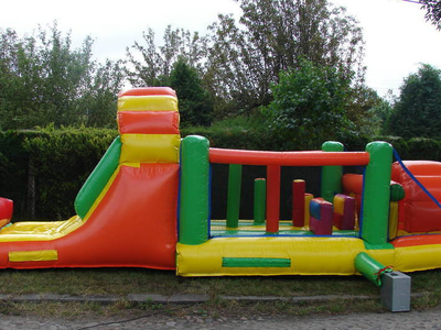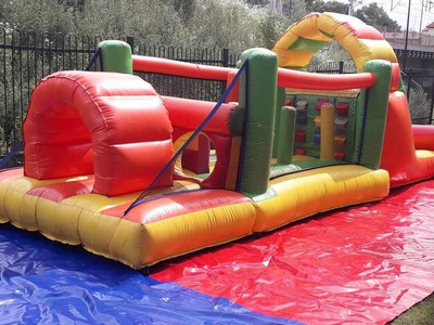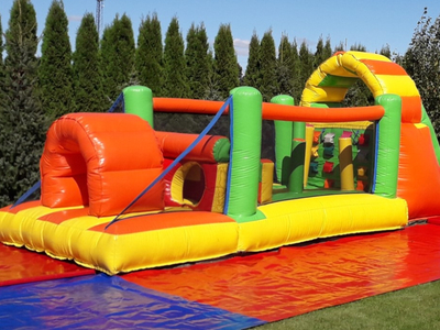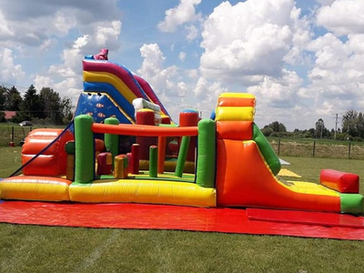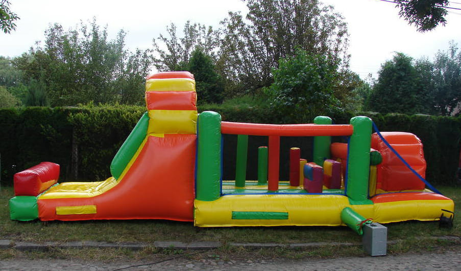 Tor przeszkód jest pneumatycznym placem zabaw, w którym zamek do skakania jest połączony z torem przeszkód i zakończony zjeżdżalnią.