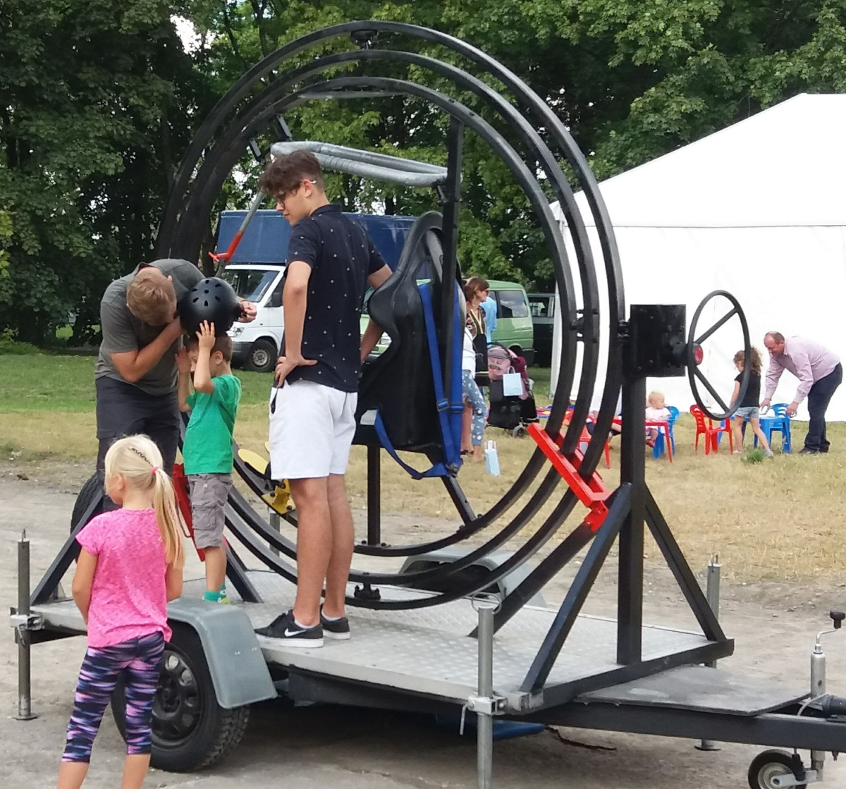 Kolejną Atrakcją jest Potrójne Koło Reńskie (na przyczepie) tzw. ŻYROSKOP - jest to unikatowe urządzenie rekreacyjne, uczestnik zabawy przekona się co to jest lot bezwładnościowy i przeciążenie 3G.
