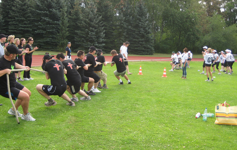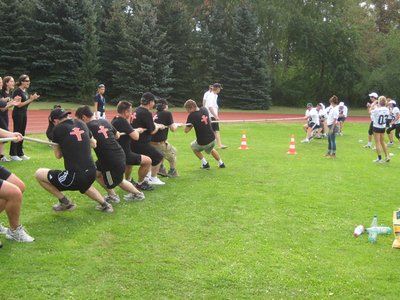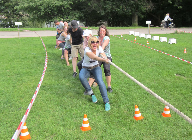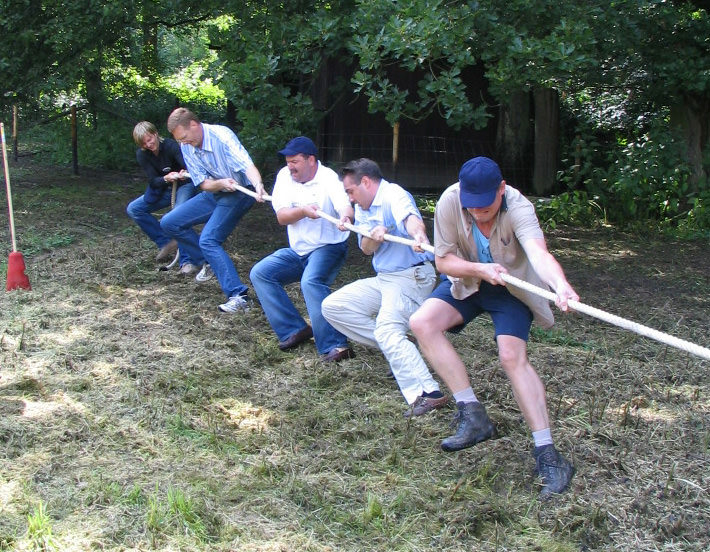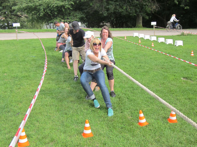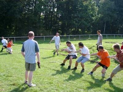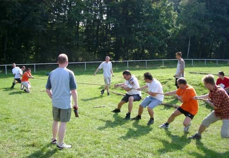 Przeciąganie liny to doskonały wybór - konkurencja polega na rywalizacji dwóch drużyn, które ciągną linę w przeciwnych kierunkach, starając się przeciągnąć środek liny na swoją stronę.