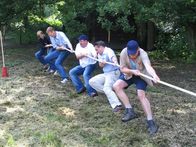 Przeciąganie liny to emocjonująca konkurencja siłowa - Dwie drużyny "OSIŁKÓW" - lina i zaczynamy siłowanie.