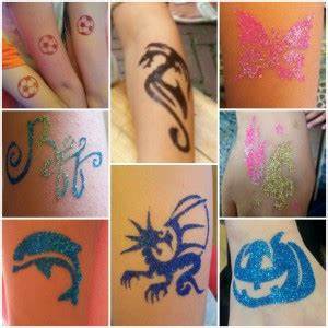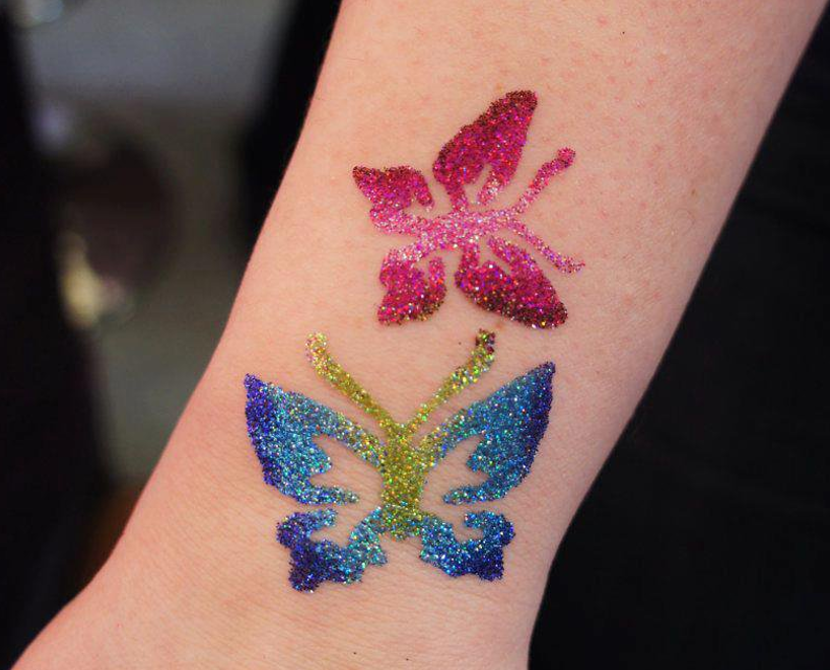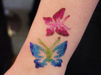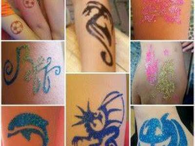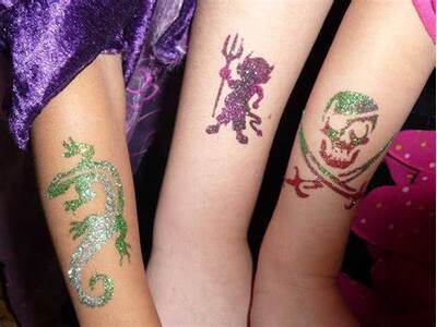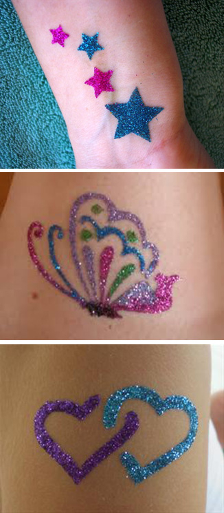 Tatuaże brokatowe to nowość, zyskują coraz to większą sławę są bezpieczne dla dzieci - nie powodują uczulenia u dzieci tak jak henna i utrzymują się długo nawet około 1-2 tygodnia.